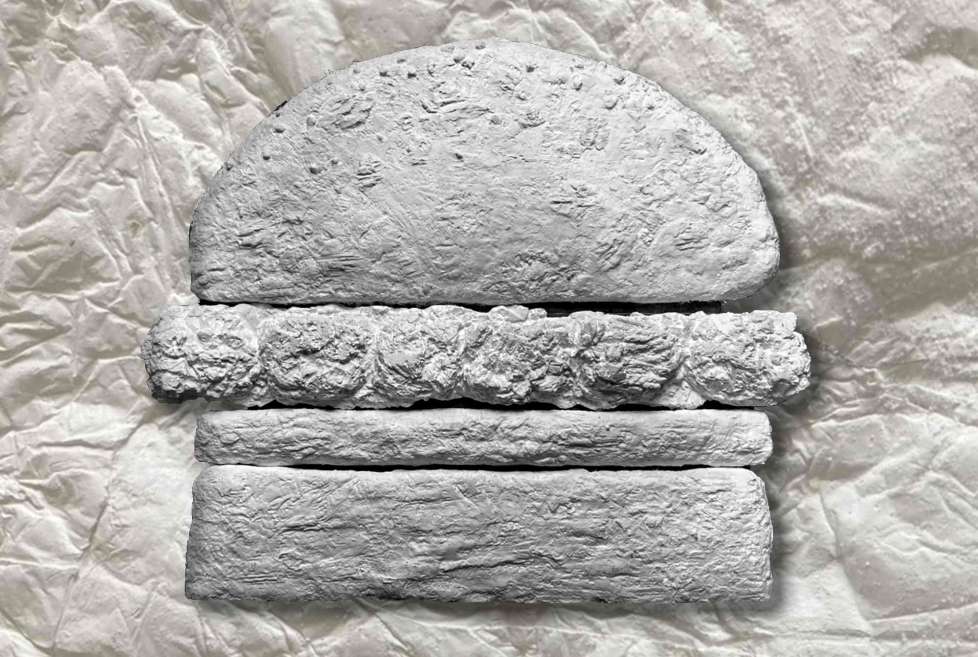 Perspective wiew to see the burger's bas-relief.