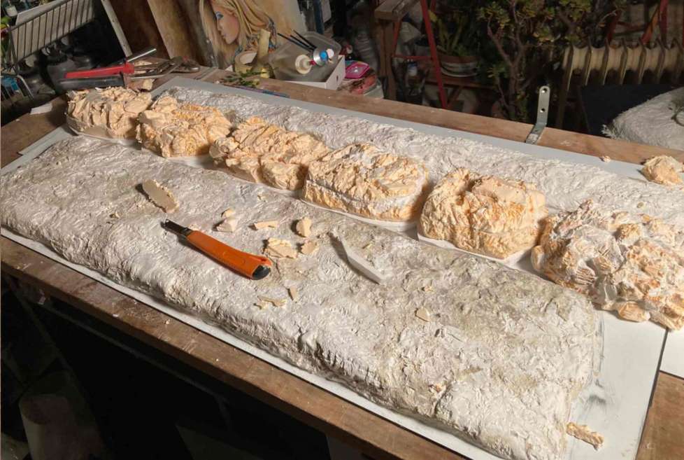 Sculpting the hamburger rock in different part.